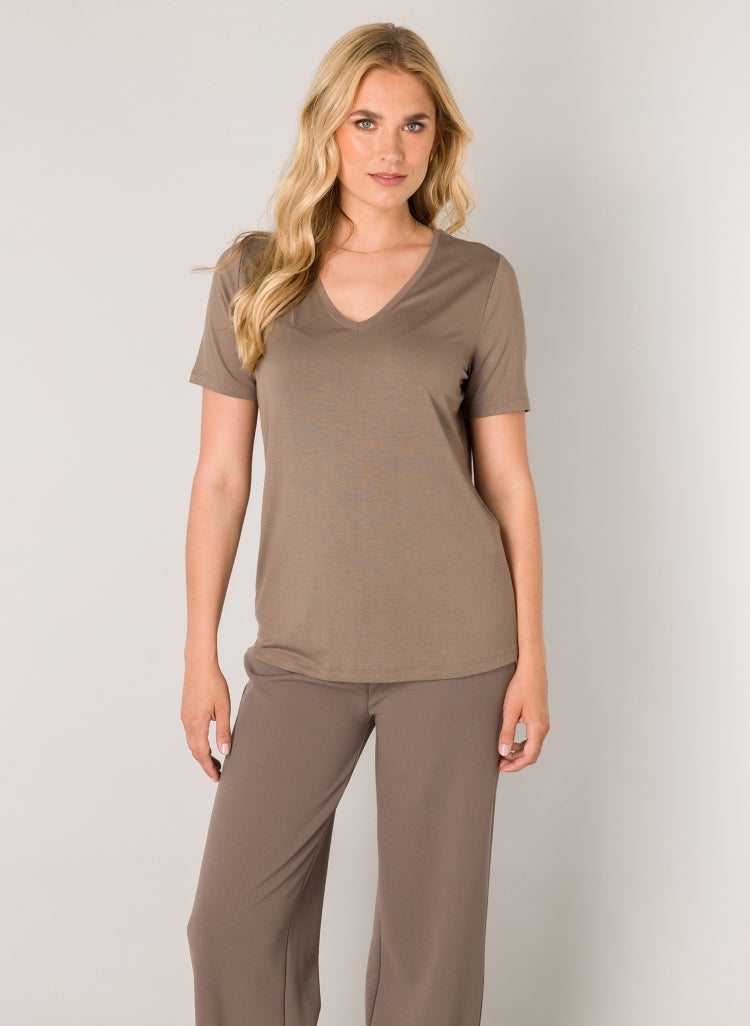 Yanic t-paita V-pääntiellä Dark Taupe Base Level